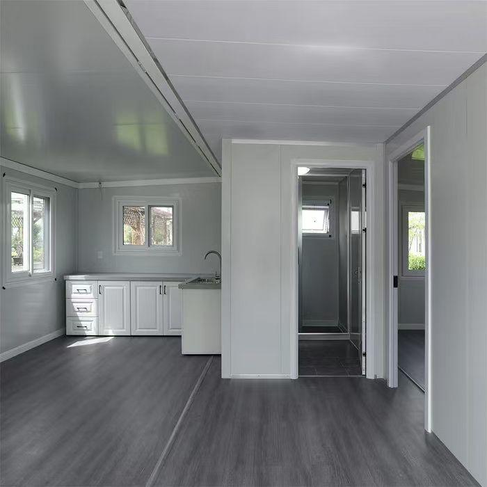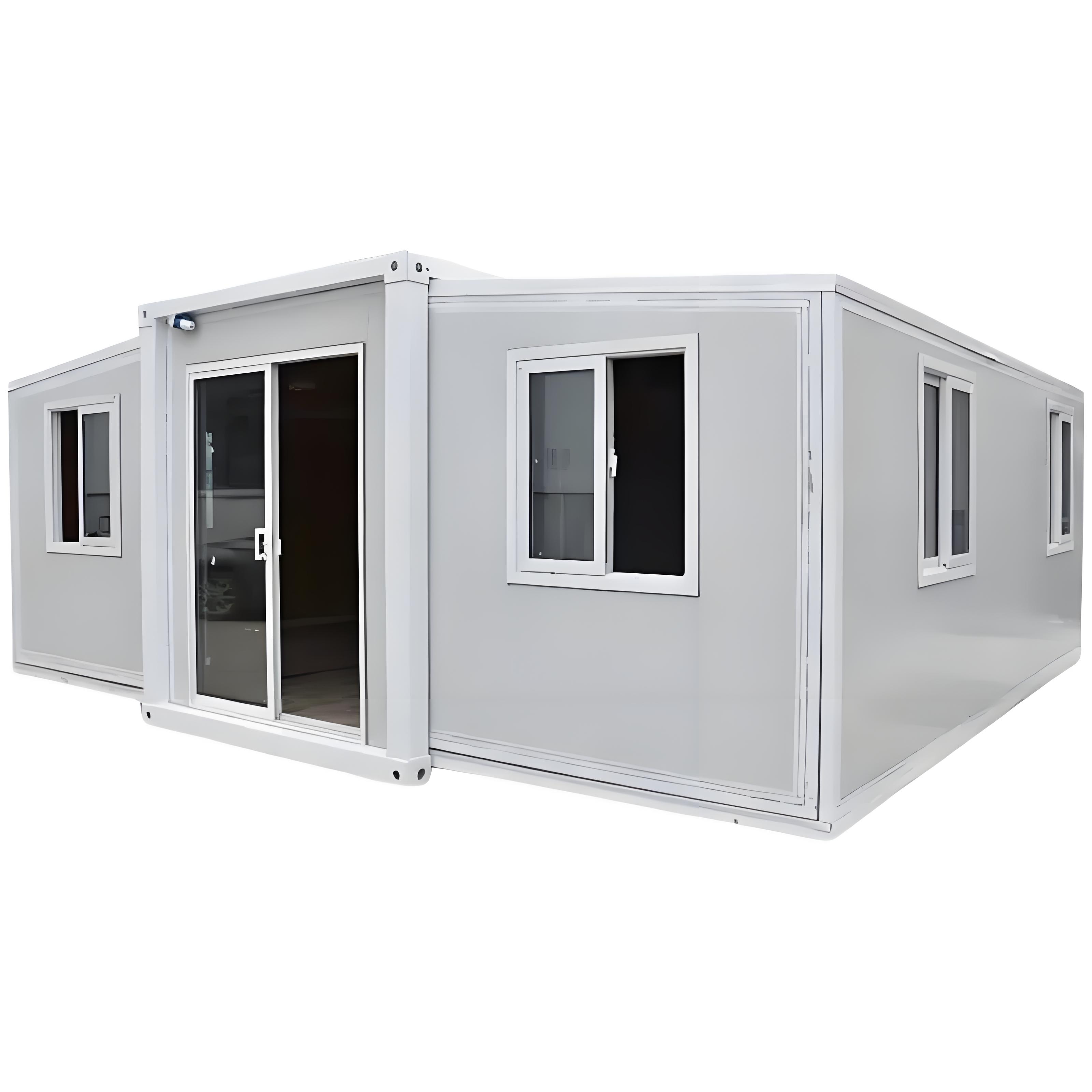 Expandable Container home represents a novel form of portable structure. Built upon shipping containers, it achieves spatial enlargement through clever architectural designs. The container itself is sturdy and equipped with waterproofing, wind resistance, thermal insulation, and other capabilities, enabling it to accommodate a diverse range of outdoor conditions. Once expanded, the interior space becomes ample, making it suitable for a wide array of applications including residential living, office use, and temporary housing in disaster relief situations.